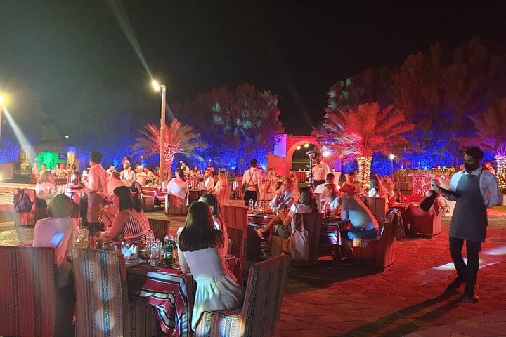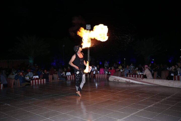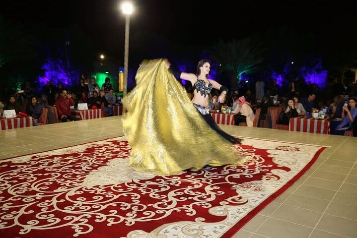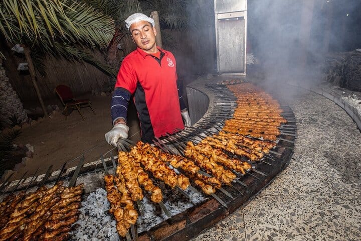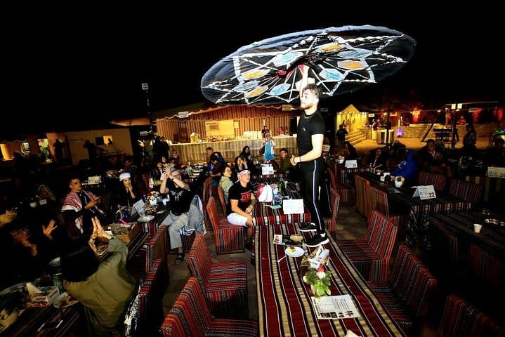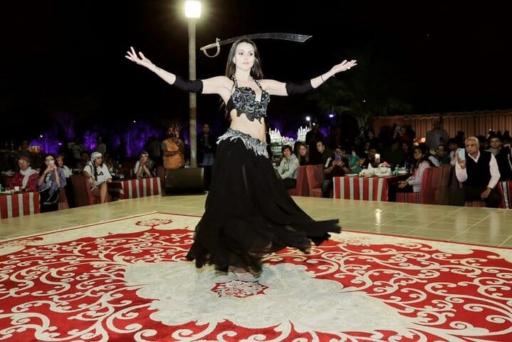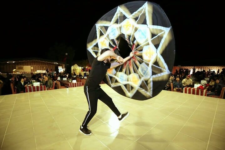 Book your tickets for Desert Safari in Jeep Wrangler to experience unlimited fun with us. Our guide will take you to the beautiful locations where you can click photos and watch sunset with your near and dear ones. Some pre-tours activities includes shopping of souvenirs and other items for a short time. An amazing Dune Bashing experience at the heights of Desert where videos and photos can be captured. It also includes Camel Riding and Sand boarding. Various entertainments like Belly Dance, Tanoura Show, and Fire shows are done by our experts. It also includes Henna Painting for women. A delicious mouth-watering BBQ food (veg & non-veg) is available with free soft drinks and water.