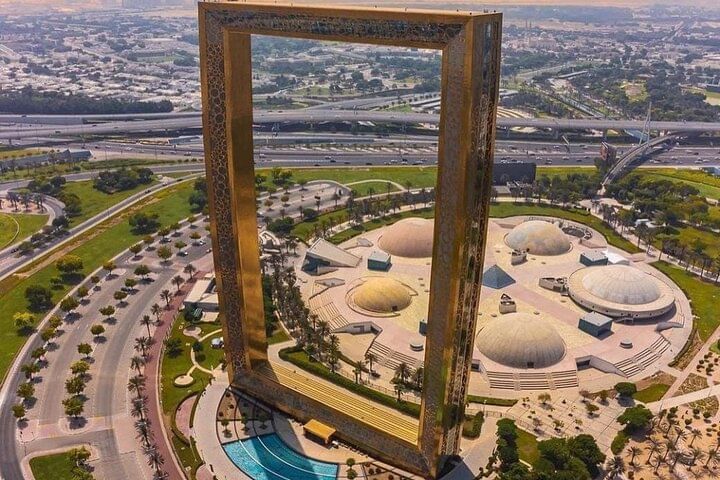 Experience Dubai's architectural marvel, The Frame, offering panoramic views of the city's skyline from its 150-meter-high observation deck and a unique perspective on the city's past, present, and future through its fascinating exhibits.