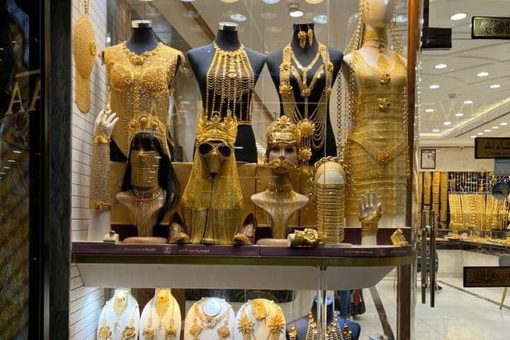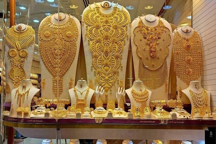 Dubai's Gold Souk is a really cool place you should check out in Dubai. It's been famous for a long time since Dubai became known around the world. The market has about 300 shops and is located in the middle of old Dubai near the creek. It's not just any market; it's a spot where you can find and buy all sorts of shiny stuff like gold, silver, and precious stones. Imagine wandering through this lively market, and you might see a few people selling handbags here and there, but the real highlight is the gold. It's like the best place ever to get some amazing gold pieces in the UAE. The souk is like a big group of more than 300 sellers, each with their own special collection of dazzling things. So, if you want to have a real Dubai experience and maybe find some really cool treasures, the Gold Souk is the place to go. It's famous for a reason, and there's so much to see and explore. You'll understand why it's such a cool spot in the heart of old Dubai!