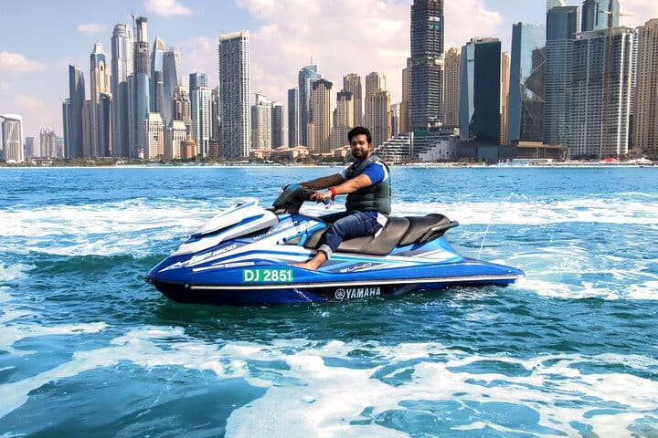 Soak up the views of Dubai from the water on a 30-minute jet ski ride along the Dubai Harbour. Glide across the sea and admire city highlights. Our guide will provide you all detailed descriptions of how to use a jet ski and will give you all the safety instructions for your fun trip before you set off. Safety jackets are available in various sizes, ensuring a comfortable fit for everyone. Complimentary water is also provided to keep you hydrated during the activity. Moreover, enjoy the best views of the city from the sea as you jet ski from the Arabian Gulf and take pictures and videos to create an unforgettable memory.
