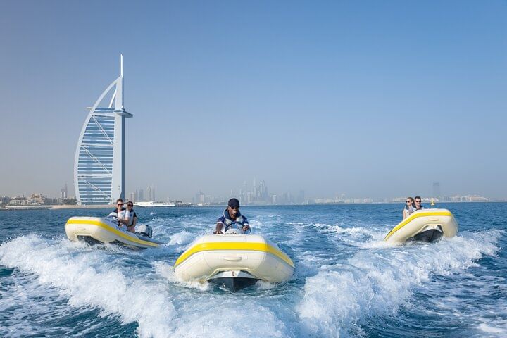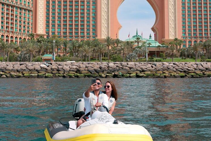 Discover Dubai from a new perspective while driving your own boat. No wonder if you have a license or not, the driving is accessible to everyone with eighteen years of age. People below eighteen years of age can be passenger. Our 60 minutes and 90 minutes of tour is the best way to explore the wonder of Palm Jumeirah, Ain Dubai, Burj Al Arab, and the distinctive Atlantis Resort. Capture stunning pictures against the background of Dubai's iconic landmarks.