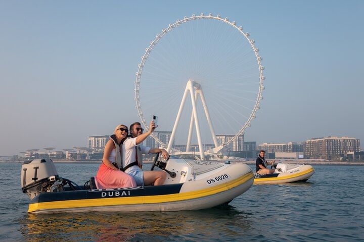 Our tour guide will be accompanying you and will be sharing the interesting facts about Dubai along the way. The best part is that no license is required to drive our boats. Command your own vessel with up to 50km/h along the beautiful coastline.