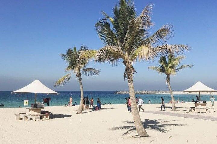 Mamzar Beach in Dubai is like one of the coolest beaches around, and everyone – both locals and visitors – loves to go there. It's super famous, being one of the top public sandy beaches in the United Arab Emirates. What makes it extra special is where it's situated and the natural vibe it has. This fantastic beach, Mamzar Beach Dubai, is made up of not just one, but five awesome sandy spots where you can kick back and go for a swim. Picture this: soft, white sand all around and a big, green area leading up to it. You've got walking paths and steps nestled between these really tall and lush palm trees, making it feel like a little piece of paradise right there in Dubai. So, if you're up for a day of relaxation and maybe a splash in the water, Mamzar Beach is the place to be – a natural haven in the heart of Dubai!
