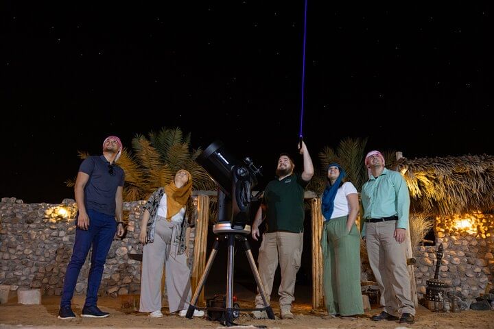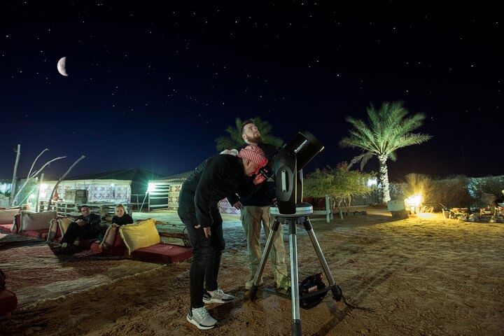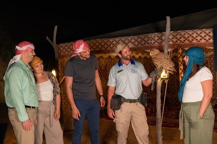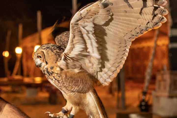 Perfect for travelers who love nightlife activities and are intrigued by the desert wildlife. Travelers will be picked up from their locations and will be taken to our camp. Enjoy a sixty-minute private Land Rover Ride with a conservation guide and explore the desert in a most unique way. Treat yourself with a three-course traditional Arabian meal in a Bedouin camp prepared by our top chef. Experience an immersive astronomy session with a professional astronomer and telescope in a Bedouin camp. Capture unlimited memories which will be hard to forget with an Owl Encounter.