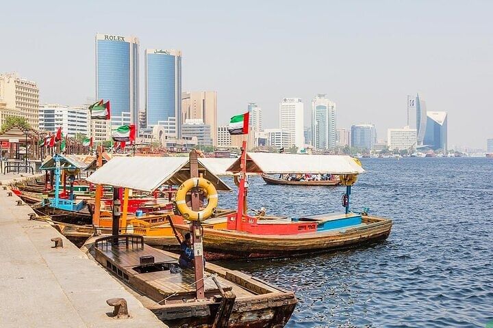 Indulge in the allure of the Dubai Gold Souk, a gleaming paradise where you can peruse exquisite jewelry and unique souvenirs. Glide serenely across the waters of Dubai Creek aboard an Abra boat, taking in panoramic views of the city skyline and passing iconic landmarks like the majestic Burj Al Arab.