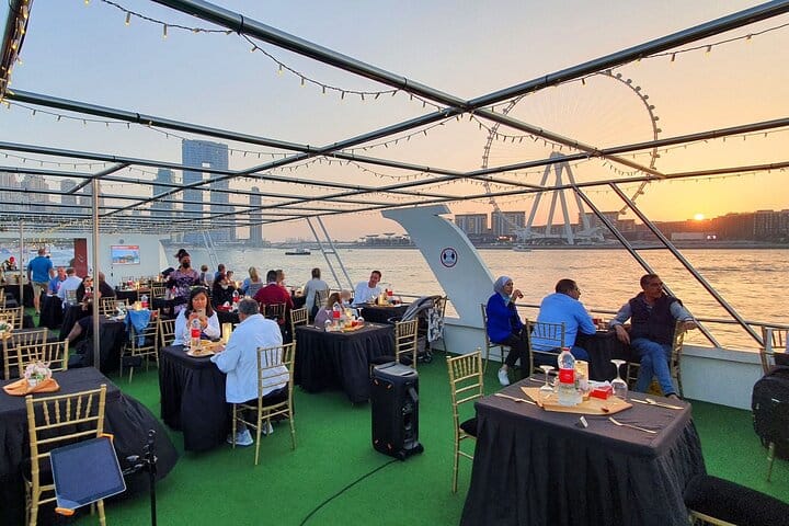 Embark on a sunset or dinner cruise in Dubai, indulging in luxury and enchantment while marveling at panoramic views of Dubai.