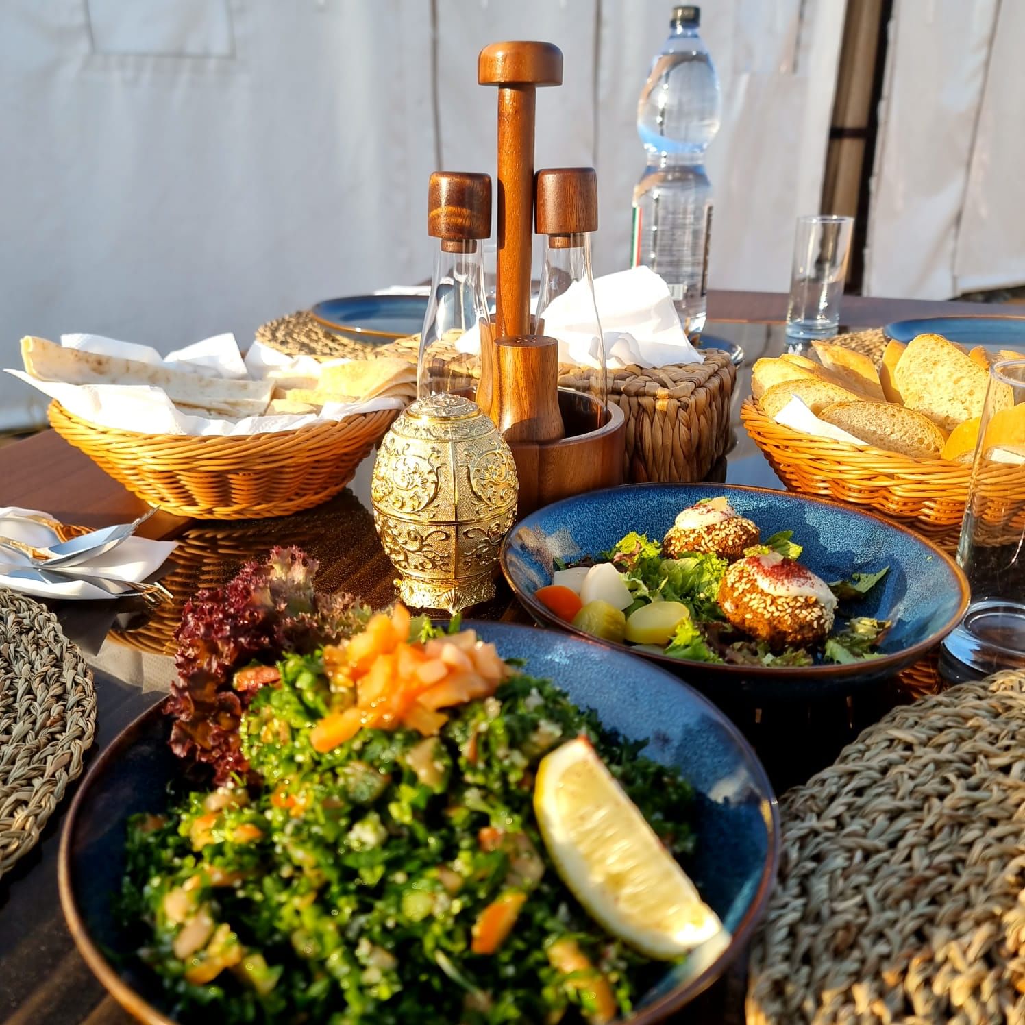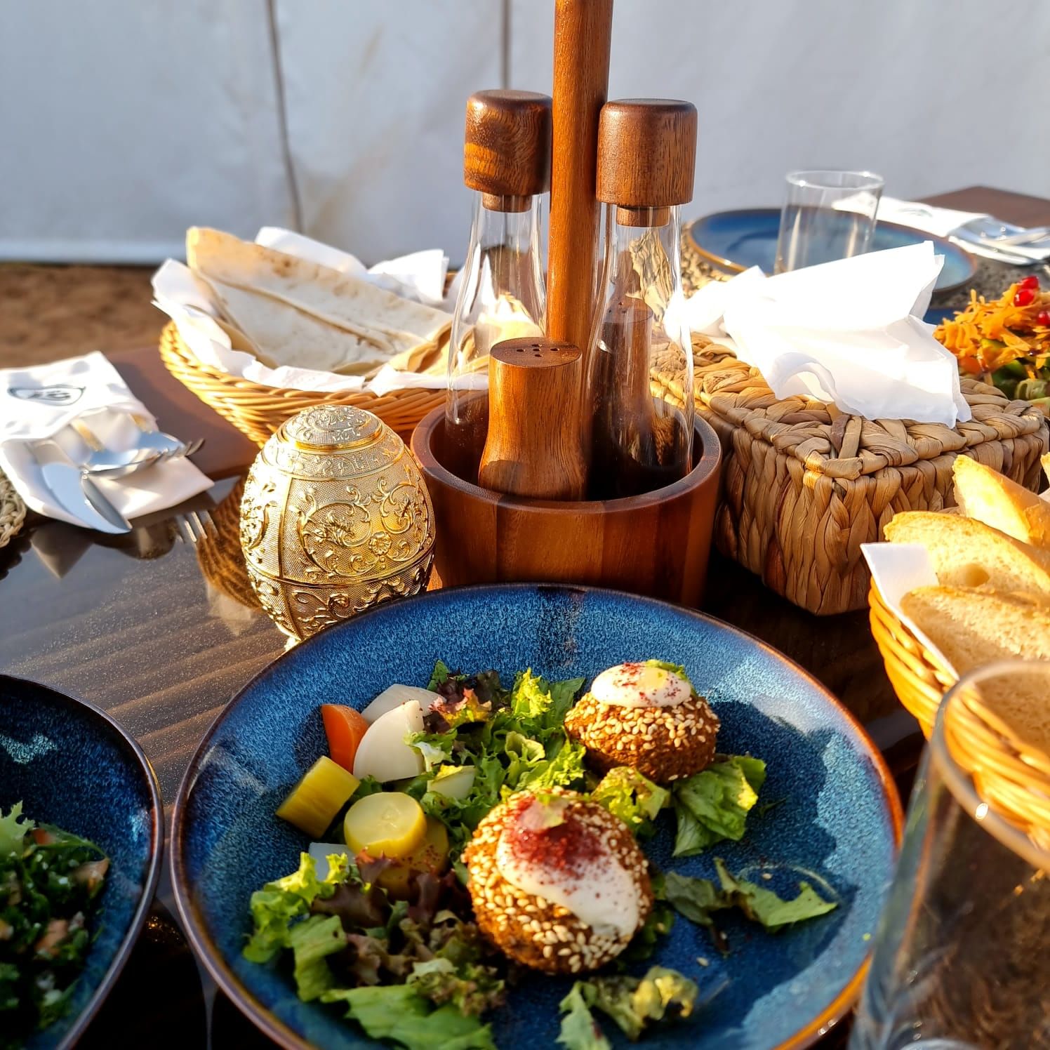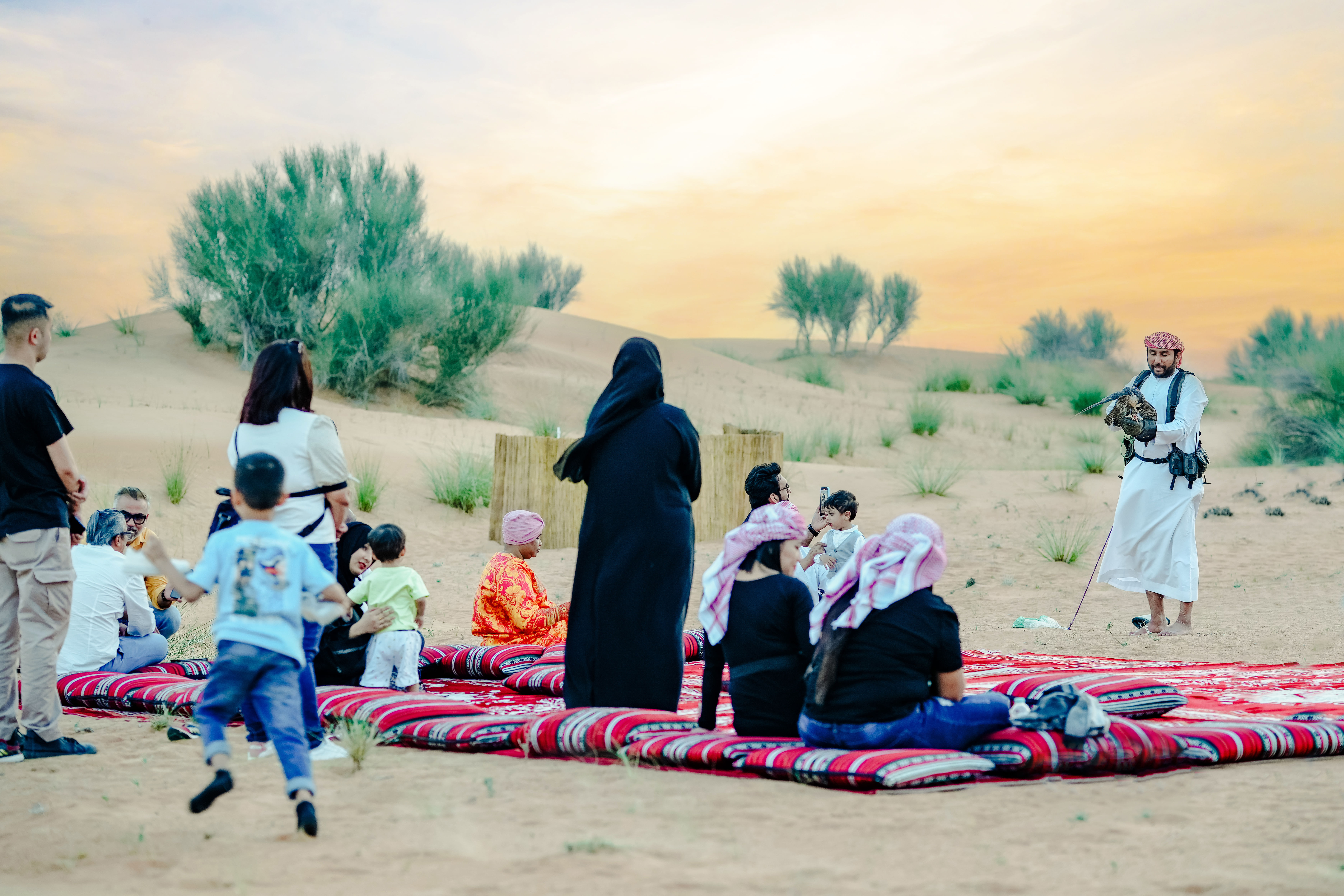 Experience the essence of the desert with 57 Heritage Safari, as we take you on a journey filled with lasting memories. Covering 225 sq km, the Dubai Desert Conservation Reserve is a protected nature reserve by the UAE government, providing a sanctuary for the region's natural flora and fauna. Our tours allow you to witness the magnificent landscape of the reserve, delve into the rich culture and history of the region and experience thrilling adventures in the desert. Watch an engaging and interactive falcon show, take a leisurely nature trail in rare, iconic, classic 1950s open top land rovers, and go camel trekking at sunset. Afterward, indulge in the flavors of Arabia-inspired cuisine served right at the table in our luxury 57 Safari Camp. Our campsite provides the perfect ambiance for a memorable evening under the stars, complete with fascinating shows and entertainment. Join us for an unforgettable adventure in the heart of the desert.